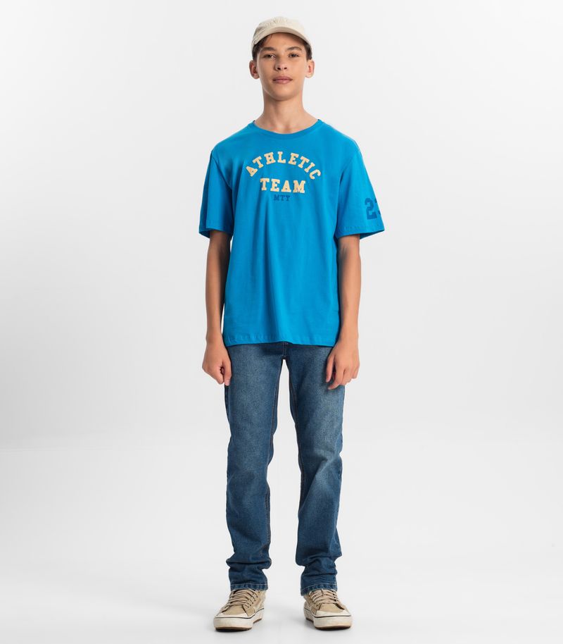 Camiseta Juvenil Masculina Em Meia Malha Minty Azul