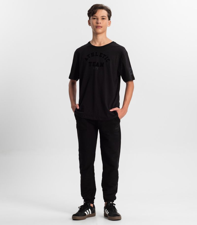 A Camiseta Juvenil Masculina em Meia Malha Minty é a escolha perfeita para um look casual e cheio de estilo. Confeccionada em meia malha, oferece conforto e leveza para o dia a dia. A estampa nas mangas traz um toque moderno, enquanto a estampa na parte da frente, com efeito flocado, adiciona sofisticação e personalidade à peça. Versátil e descolada, é ideal para jovens que buscam praticidade sem abrir mão do estilo, podendo ser combinada com diversos looks.