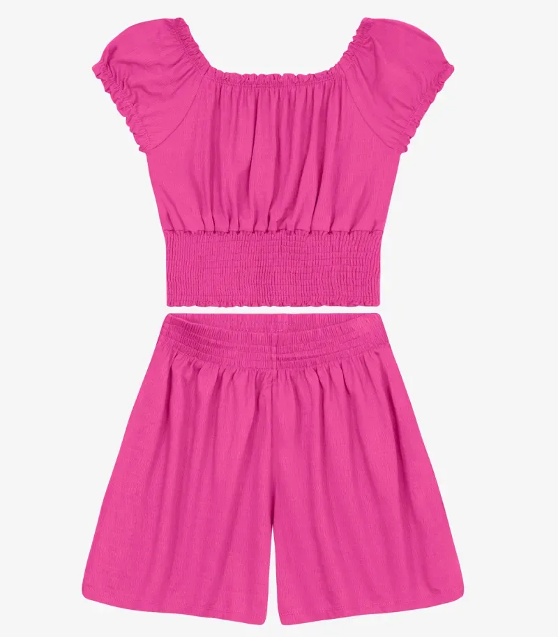 Conjunto Juvenil Blusa Com Shorts em Viscose Minty Rosa